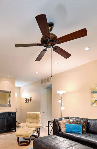 Professional installation of new ceiling fans in bedrooms, living rooms, patios and offices. Multiple mounting options and styles available.